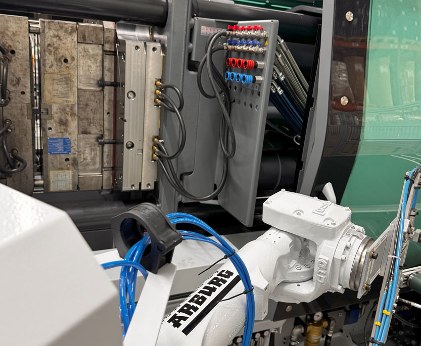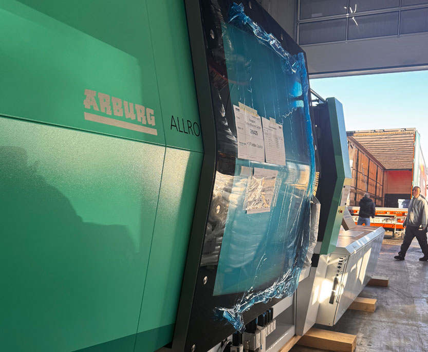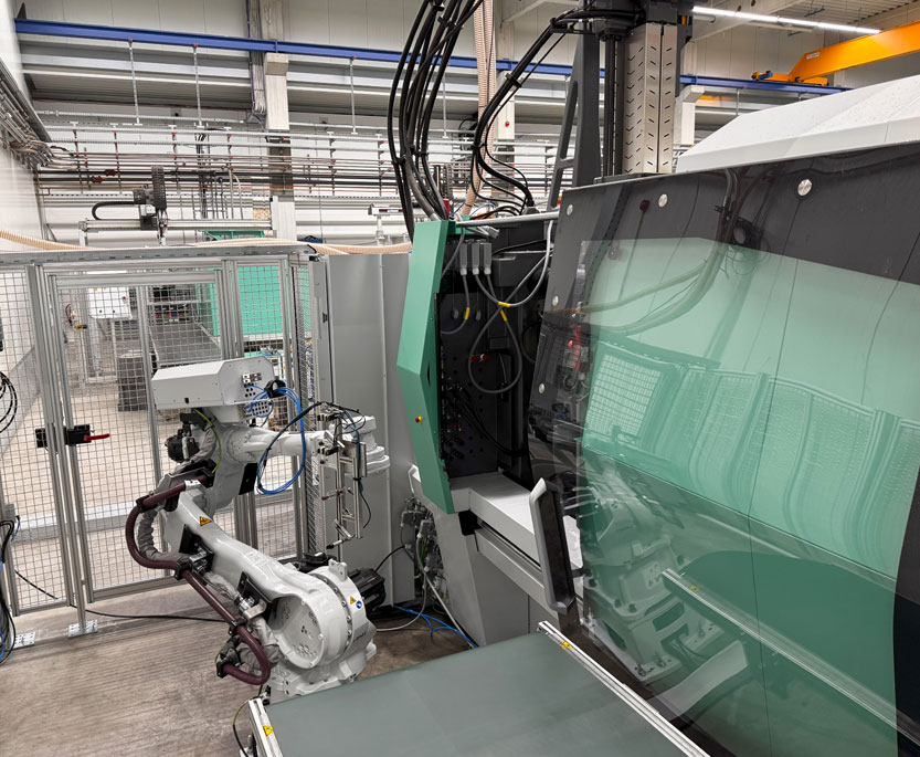 Im Januar konnten wir eine weitere Mehrkomponentenmaschine der Firma Arburg erfolgreich in Betrieb nehmen – eine Arburg 820 S 4000-800/400 mit maschinenseitigem elektrischen Drehteller sowie einem 6-Achs-Handling-System der Firma Yaskawa.