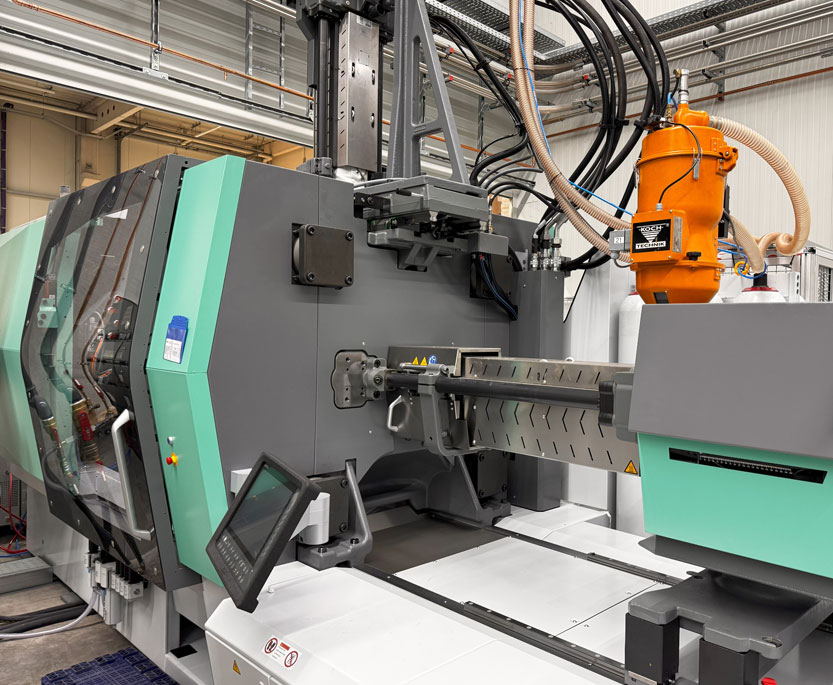 Bereits bei der Auswahl der Maschine lag ein besonderer Fokus auf Energieeffizienz: Ausgestattet mit elektromechanischen Dosierantrieben und zusätzlichen Heizmanschetten leistet die Maschine einen wichtigen Beitrag zur nachhaltigen Produktion.